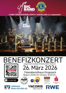 Am 26. März 2026 gastiert die Bigband der Bundeswehr auf Einladung des Lions Club Hürth bereits zum dritten Mal im Feierabendhaus Hürth-Knapsack. Konzertbeginn ist um 20:00 Uhr.